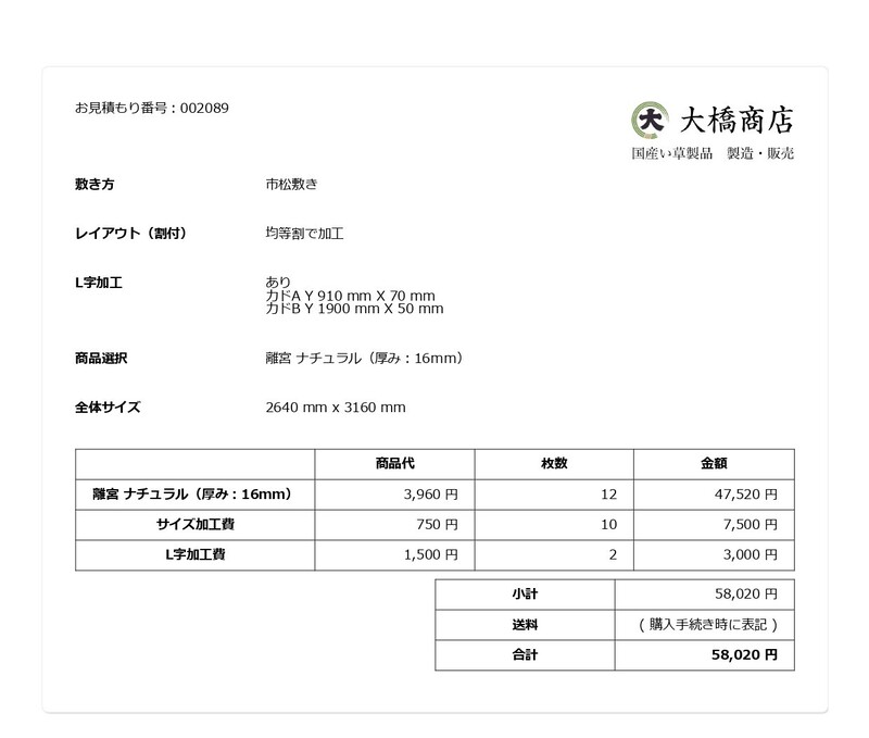 部屋の形状に合わせて置き畳を敷きたく加工の依頼をしました。